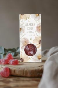 Trevlig förpackning med godis i form av röda geléhjärtan