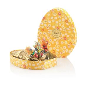 En vacker äggformad presentask fylld med underbara vårpraliner i olika smaker från italienska Venchi.