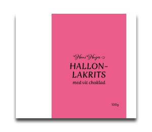 Trevlig förpackning med godis i form av hallon/saltlakrits karameller