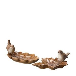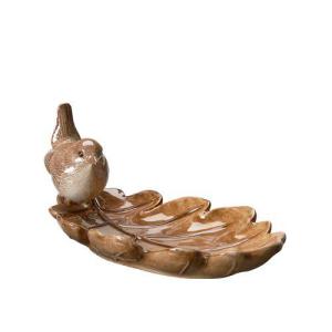 Dekorativt fat (ek eller lönn) med en liten fågel sittandes på kanten