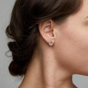 Guldpläterade cirkelformade stiftörhängen med klara kristaller