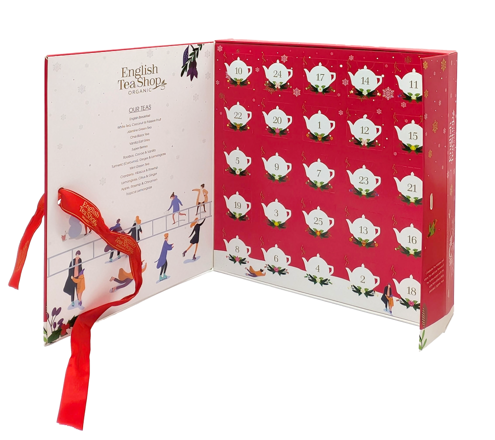 En vacker jullalender, innehållande en härlig mix av English Tea Shops finaste teer. Varje dag bjuder på en ny smakupplevelse, fylld med värme och feststämning.
