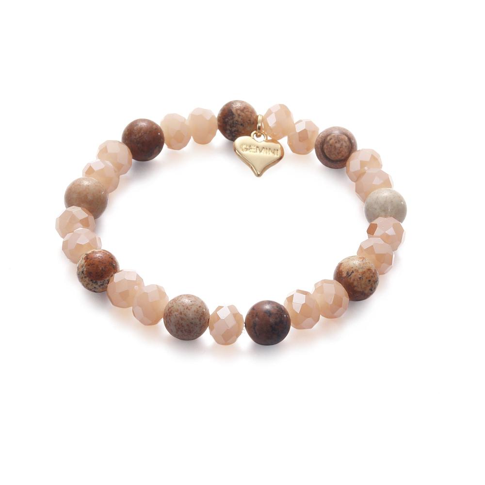 Armband Elastiskt, Pärlor i jordnära toner - Gemini