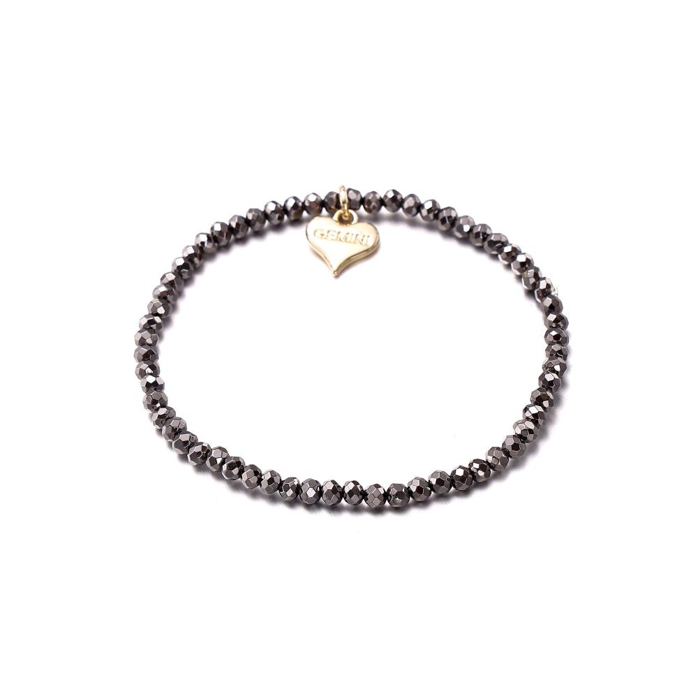Armband, Grå skimrande fasetterade stenar, Elastiskt - Gemini