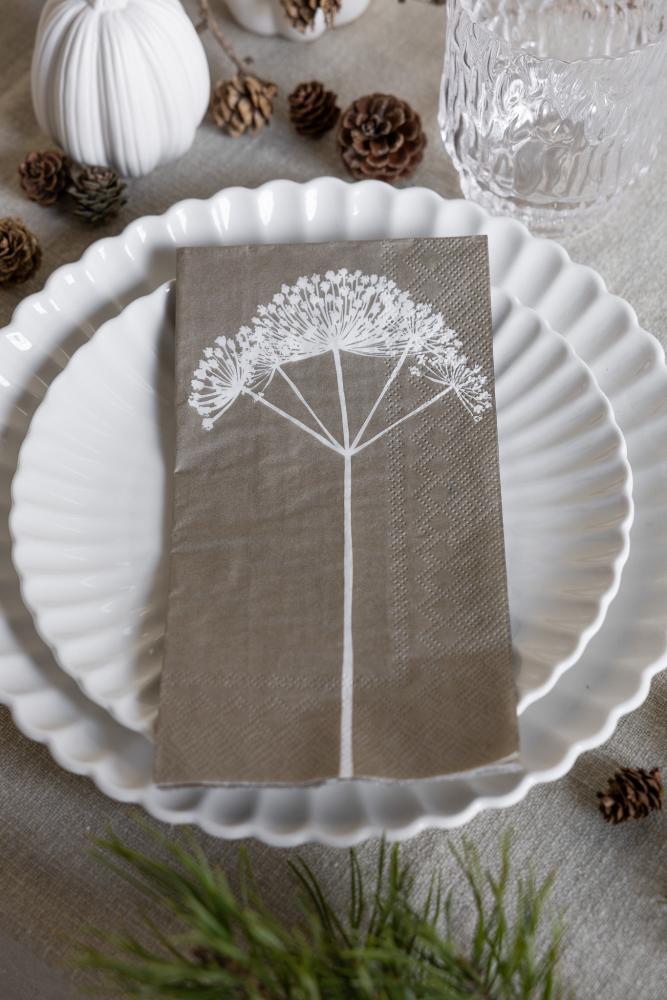 Dekorativ servett i en fin gråbrun nyans med en siluett av en björnloka.
