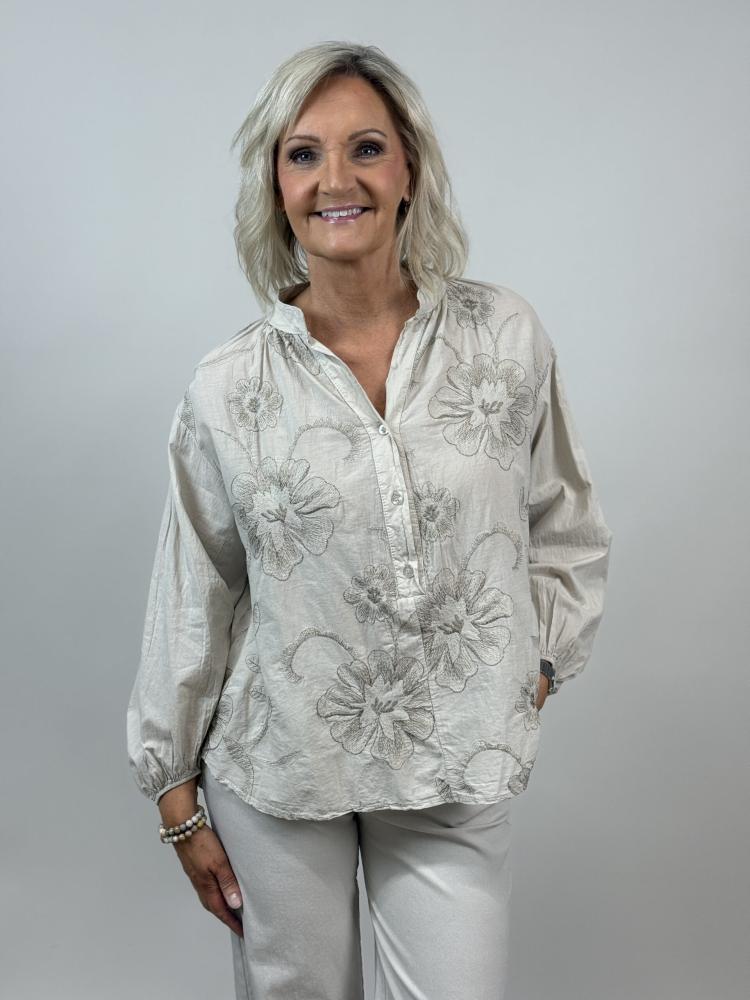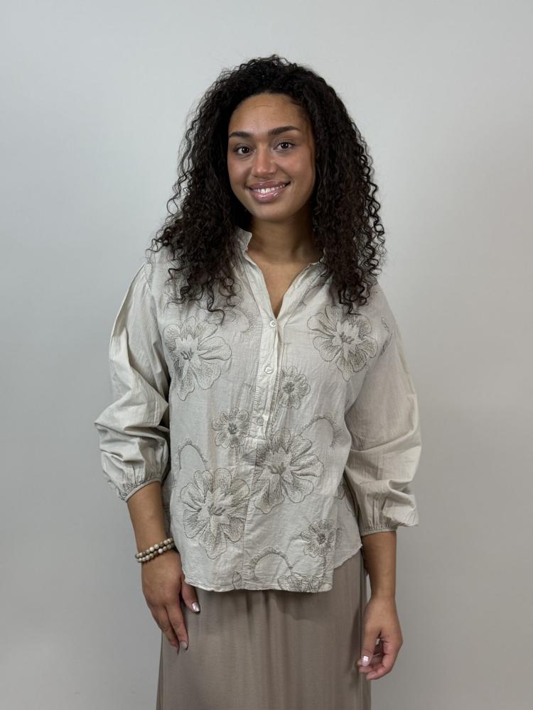 Blus, Beige med broderi, Jennifer - Mix by Heart