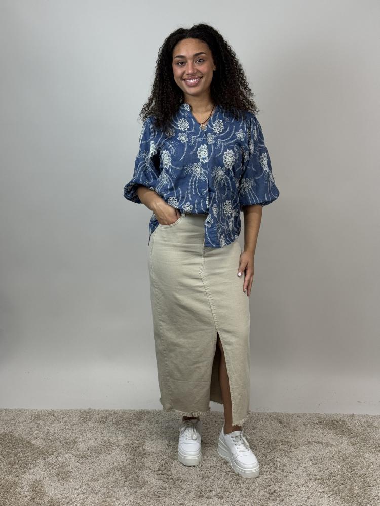 Blus, Blå med beige blombroderier, Maja - Mix by Heart