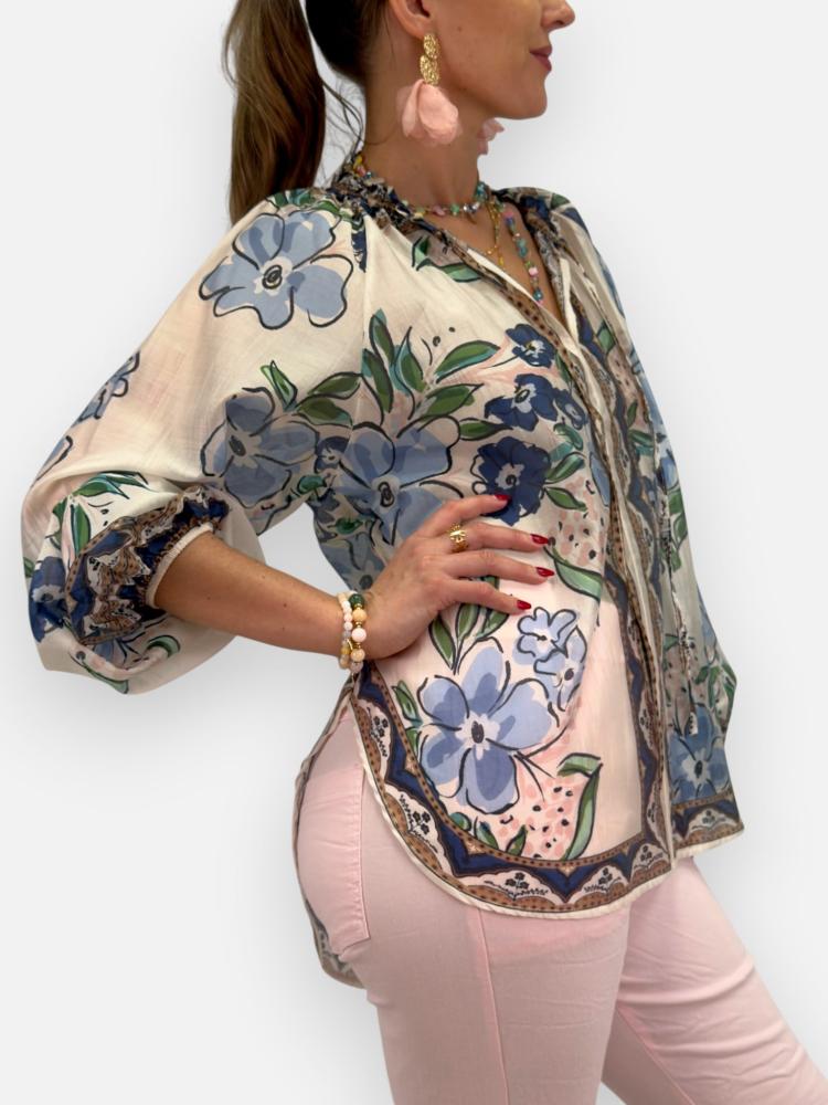 Blus, Blommig i tencel, Blå Anne - Gemini