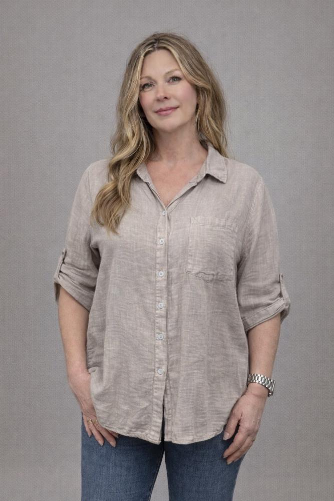 Bär blusen till ett par smala jeans och sneakers för en avslappnad vardagslook, eller kombinera den med en kjol och boots för en mer dressad stil. Den naturliga linne-looken gör att den enkelt kan bäras både till vardags och mer uppklädda tillfällen.
