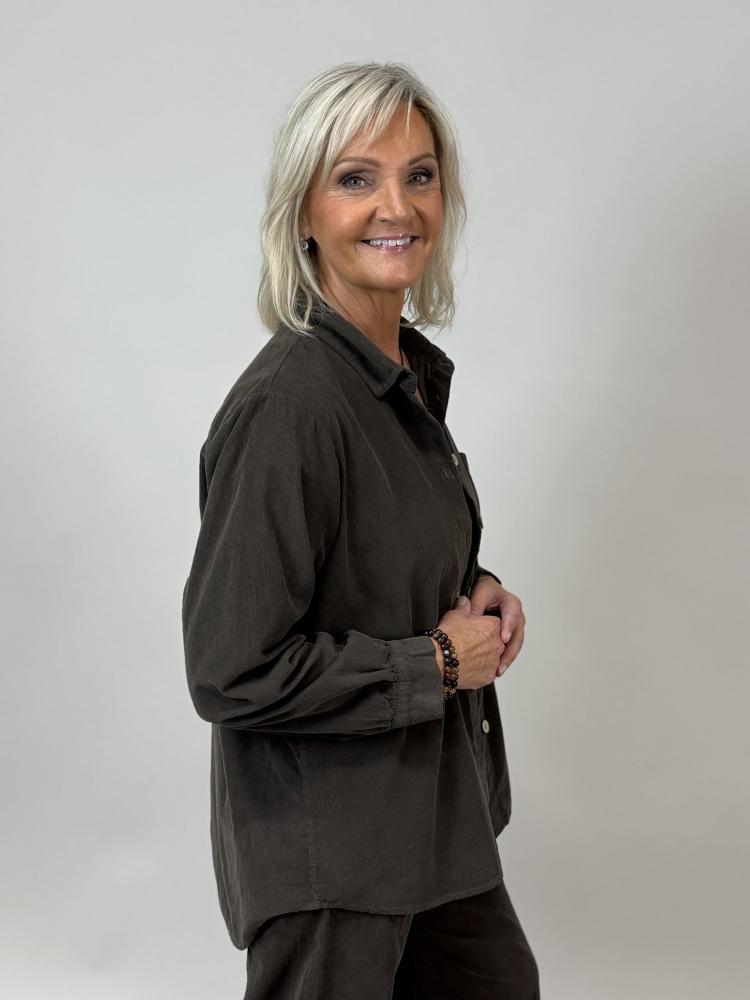 Anja är en trendig och mångsidig manchesterblus som kombinerar klassiskt snitt med modern stil. Den mjuka bomullskvaliteten gör den otroligt skön att bära – perfekt som både skjorta och lätt jacka. De fina träknapparna och de diskreta manchesterränderna ger en naturlig och avslappnad känsla som passar lika bra till jeans som till kjol.