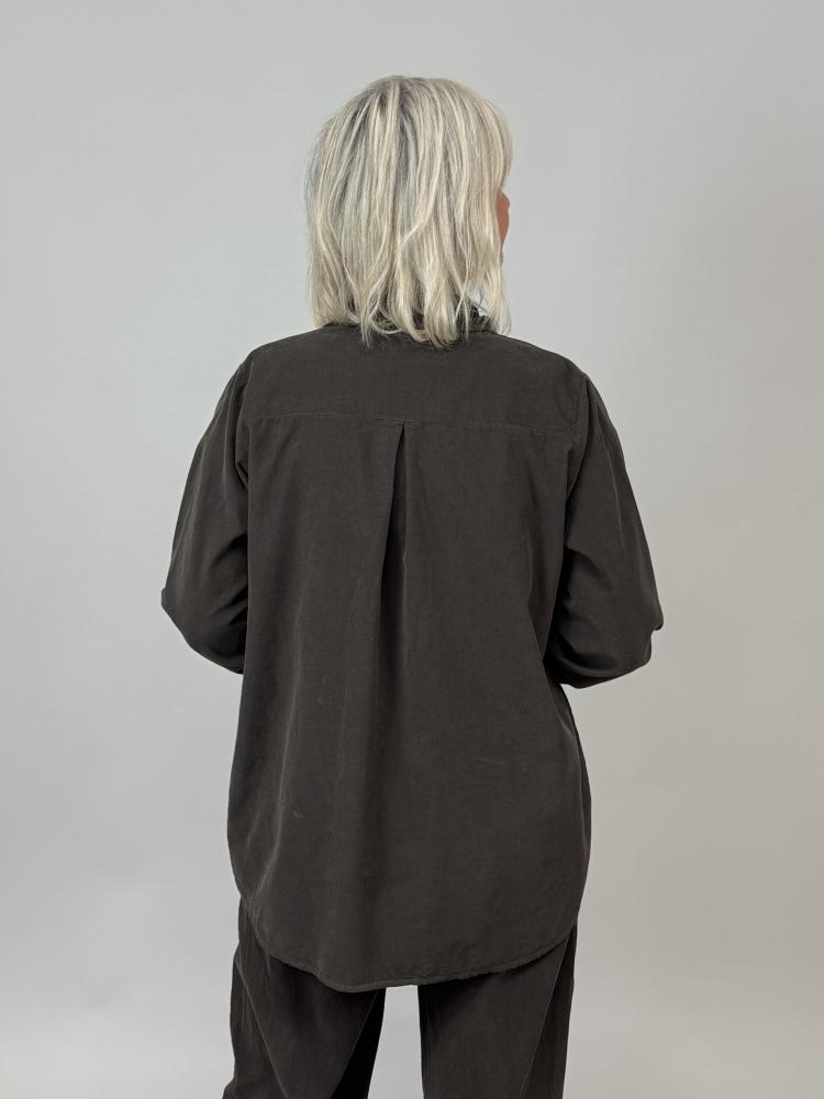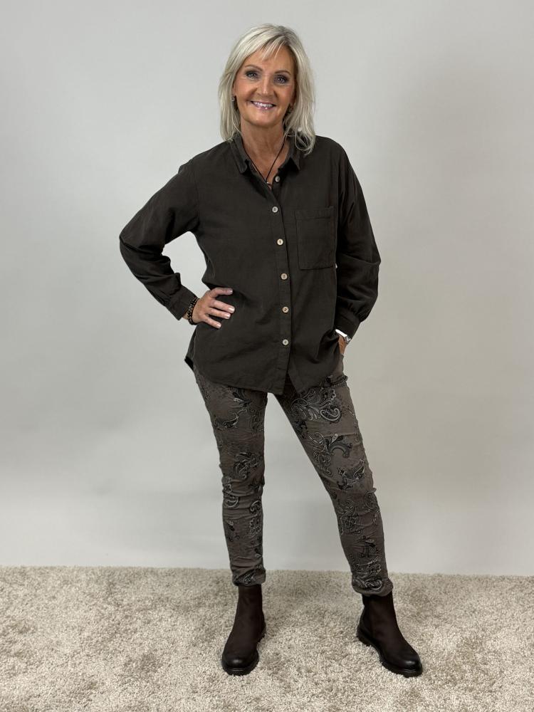 Mjuk och skön manchesterskjorta med krage och helknäppt med träknappar. Lång ärm med manschett i ärmslut.