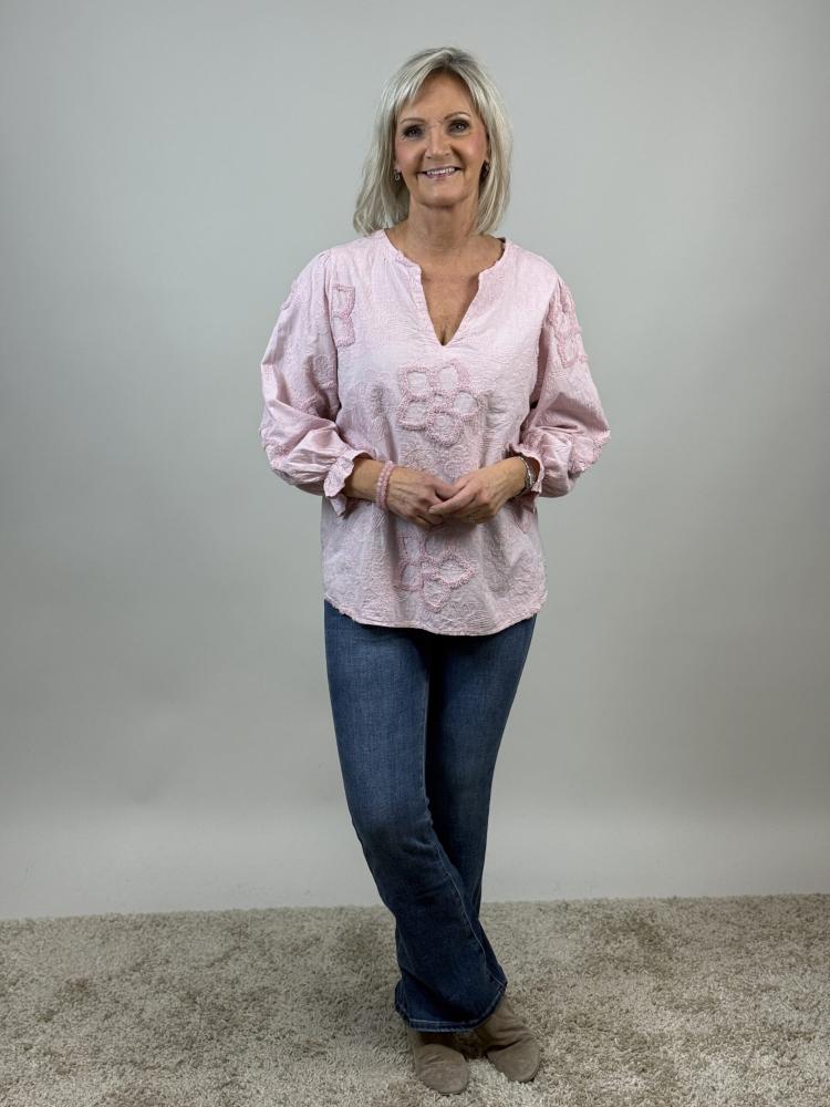 Blus med blomapplikationer, Rosa Melanie - Mix by Heart