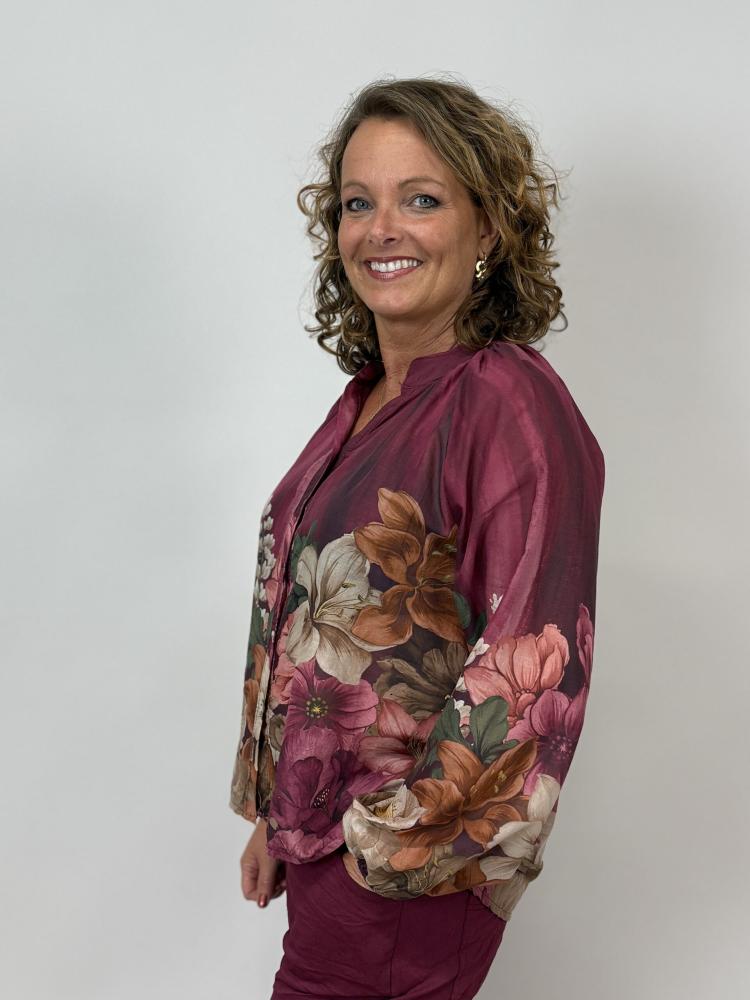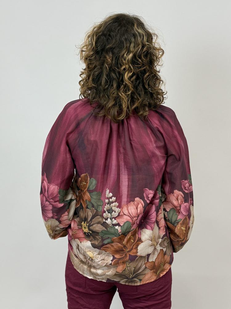 Blus med blombård, Vinröd Rose - Mix by Heart