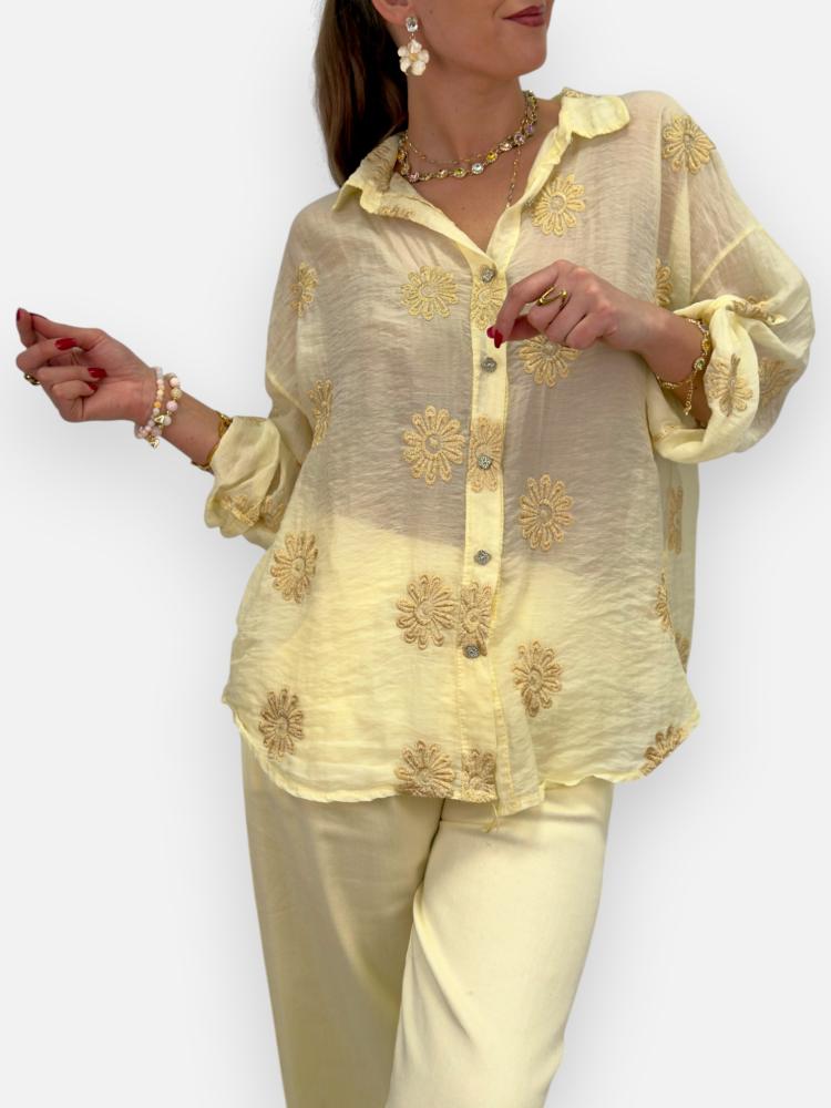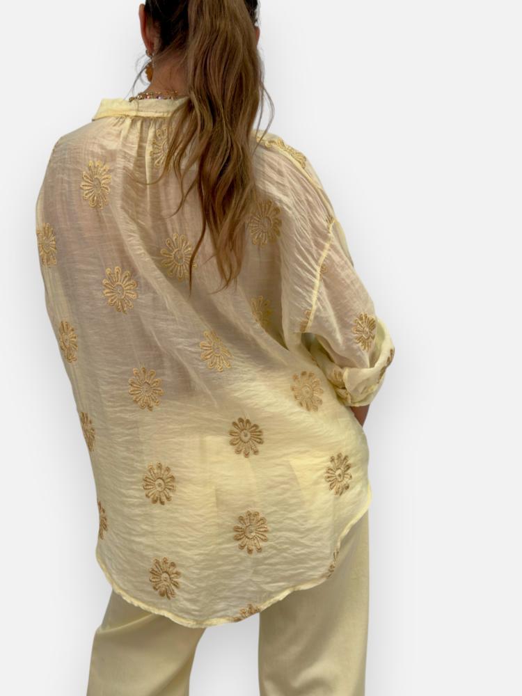 Blus med guldbroderade blommor, Gul Serina - Gemini