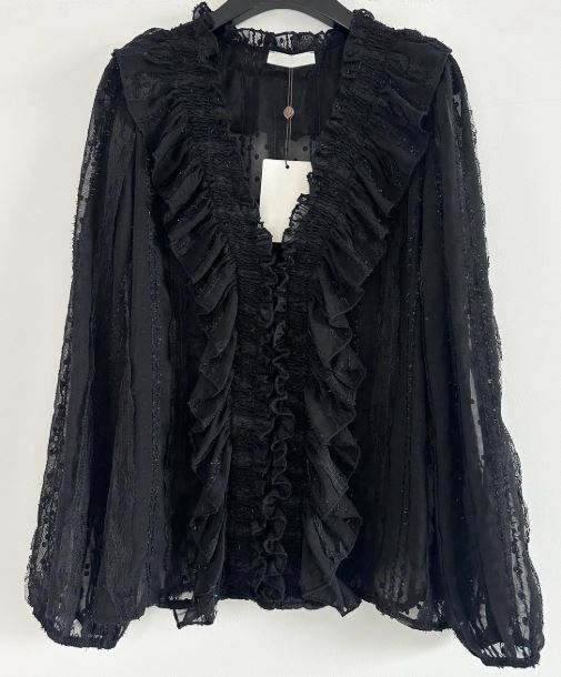 Blus med spets, volang och glitter, Svart Sanna - Caramelle Fashion