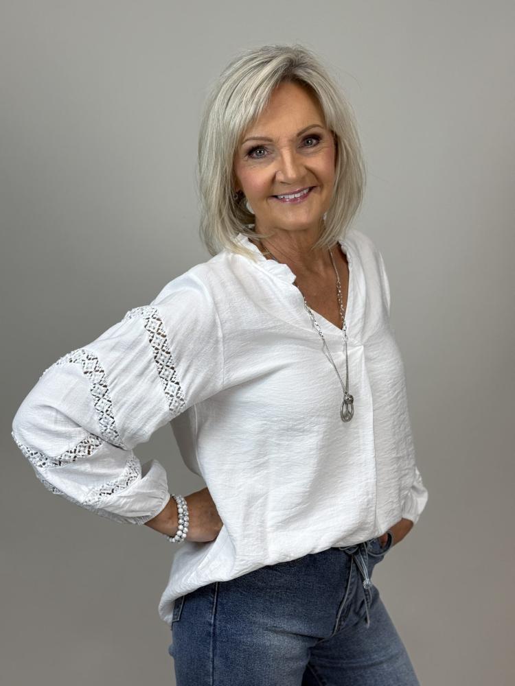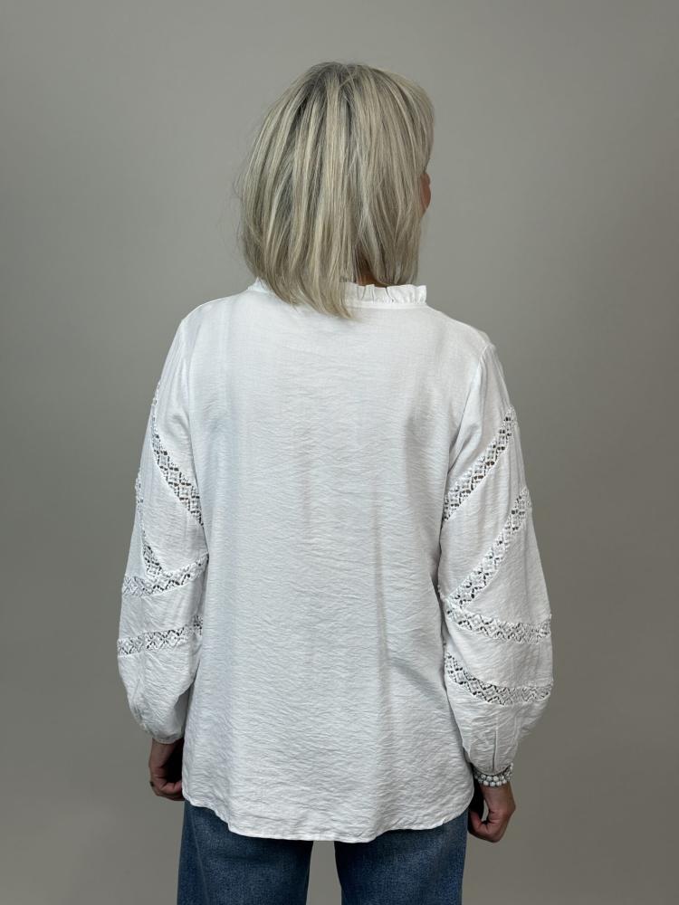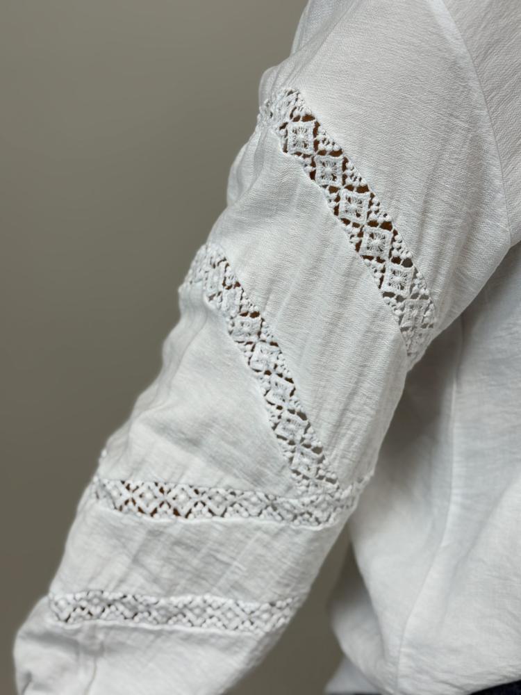 Blus med spetsbrodyr på ärmen, Vit Fiona - Mix by Heart