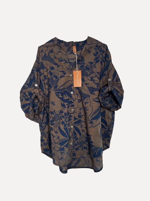 Blus Storblommig Brun / Marin, Bea - Onesize - Reunion Home