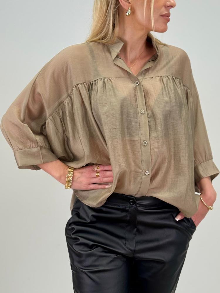 Blus Taupe, Glansig Taupe, Anjou - Gemini