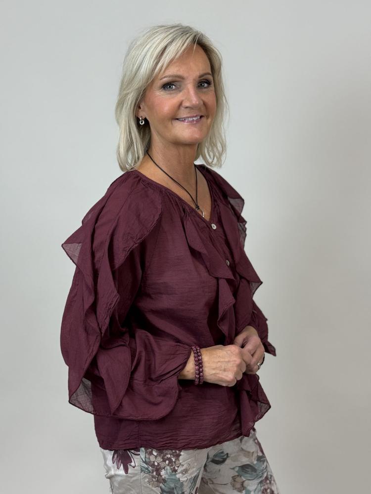 Blus med volanger, Vinröd Gabrielle - Mix by Heart