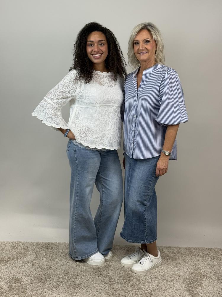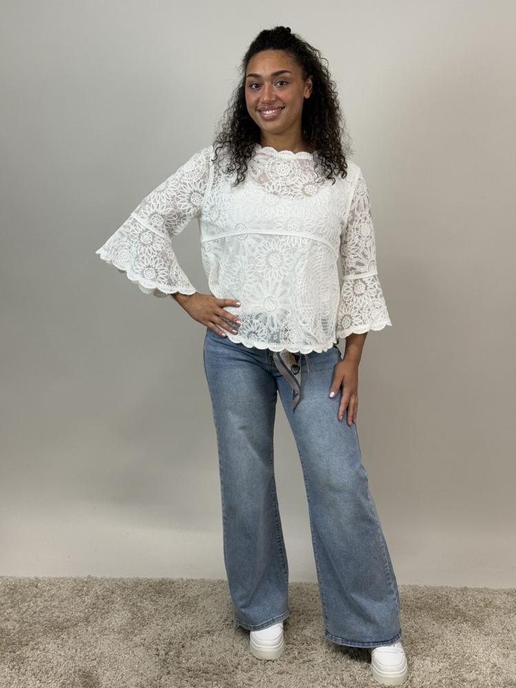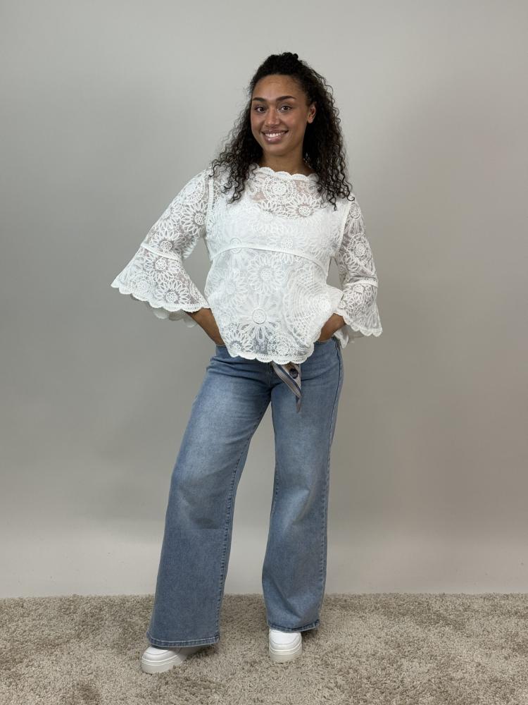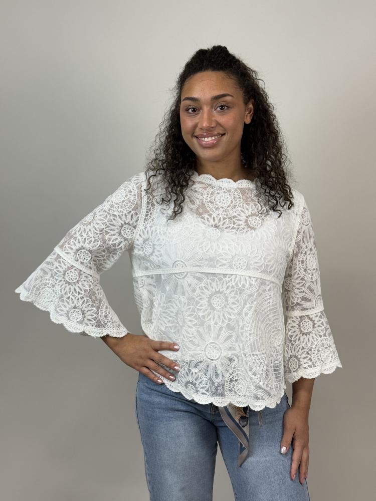 Blus, Vit spets med trumpetärm, Sienna - Mix by Heart