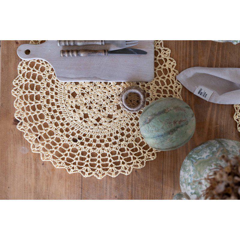 Duka naturligt och rustikt med runda virkade bordstabletter vilket ger en känsla av hantverk, tradition och nostalgi.