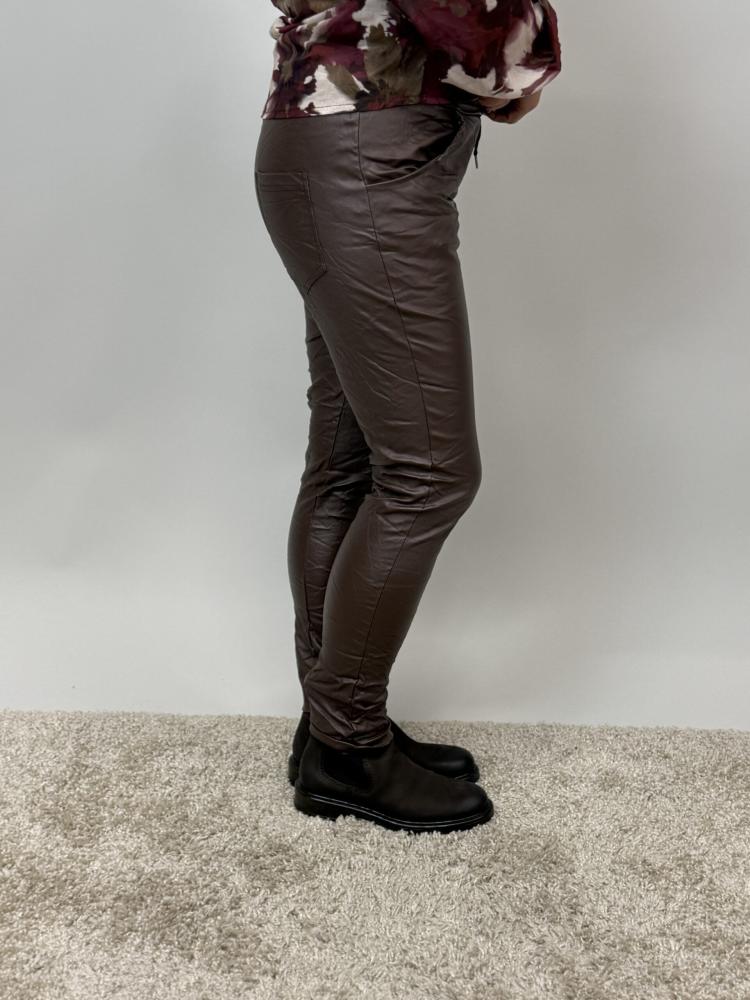 Lorena är den perfekta kombinationen av trend och komfort. Byxan har en vaxad finish som ger en cool look och är samtidigt stretchig för att sitta bekvämt hela dagen. Med resår och dragsko i midjan, samt praktiska fickor både fram och bak, är den enkel att styla för både vardag och fest.