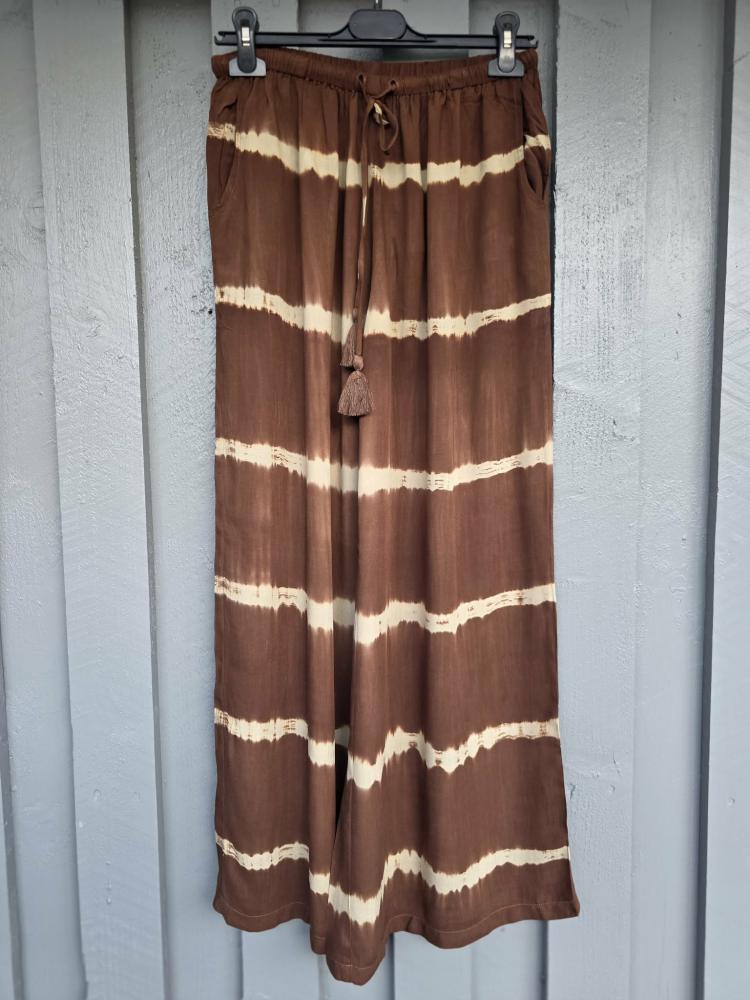 Svala, sköna och fladdiga byxor med breda ränder i batik. Resår och knytband i en härlig rayon-kvalité - Dubbelstorlek