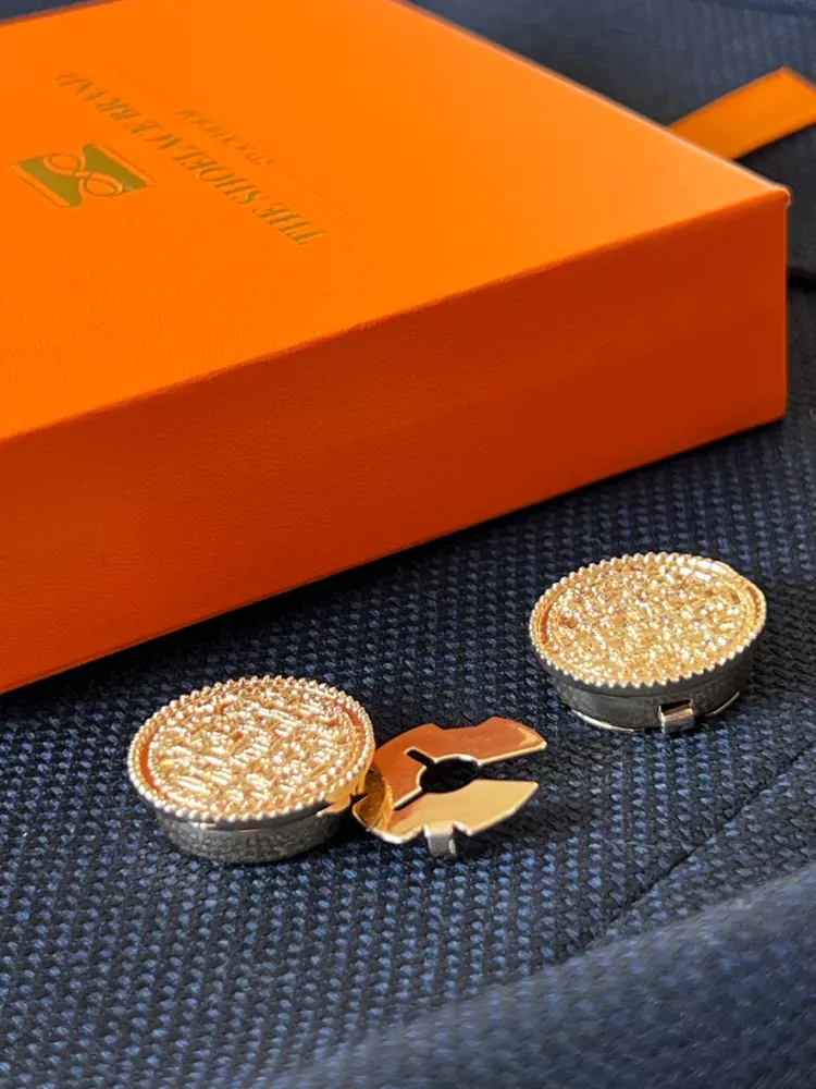 Ett par knappöverdrag, en accessoar till skjortan för män med stil. Knäpps enkelt på den vanliga knappen.