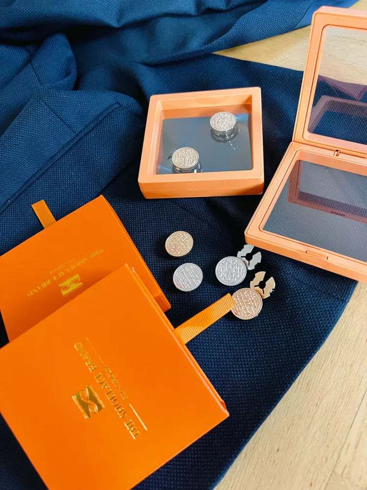 Ett par knappöverdrag, en accessoar till skjortan för män med stil. Knäpps enkelt på den vanliga knappen.