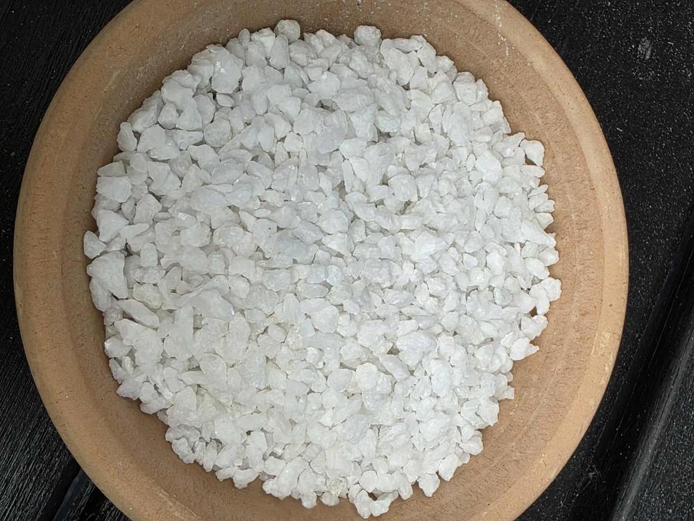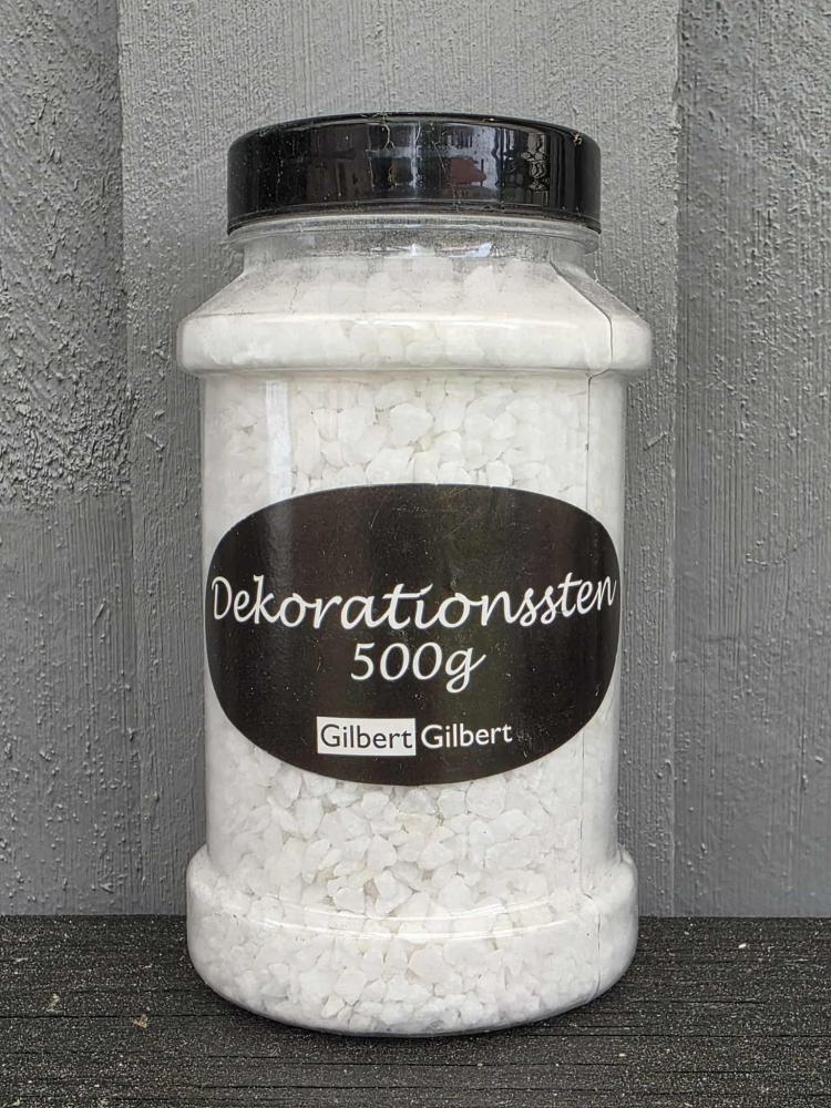 En burk med vit småsten, som dekoration i ljusstakar, ljusfat osv