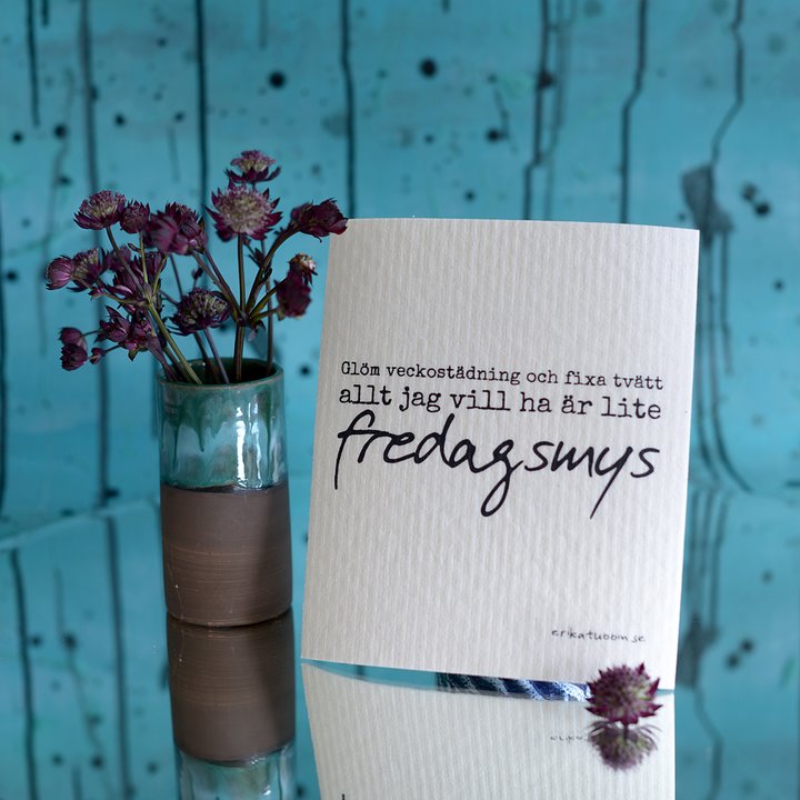 Text: "Glöm veckostädning och fixa tvätt, allt jag vill ha är lite fredagsmys."