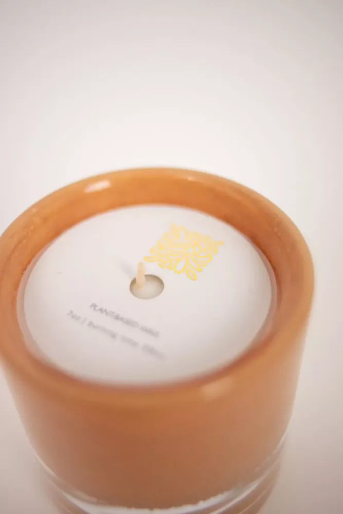 Ljuset är tillverkat av växtbaserat vax framställt från vegetabiliska oljor och ger en jämn och behaglig brinntid. Glasbehållaren ger ett mjukt sken och fungerar även som en dekorativ inredningsdetalj.