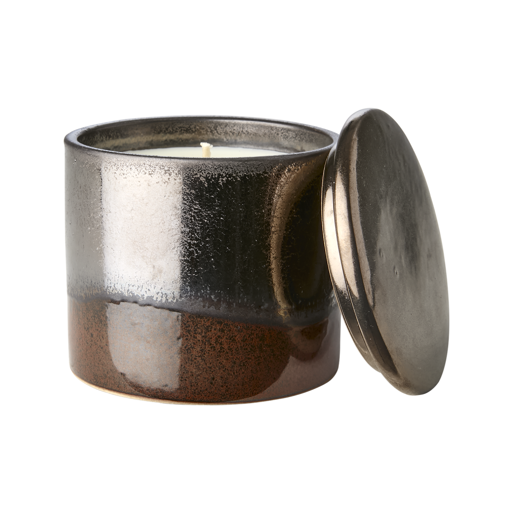 Ljus i burk med en doft av kanel. Ett brunt och rostfärgat krus, som du med fördel använder även sedan ljuset brunnit upp.