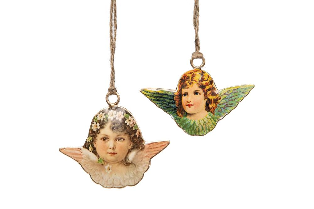 Dekorativa små klassiska änglar att hänga i granen, i trollhasseln, på paket, lägga vid bordsdukningen mm. Kommer med snöre.