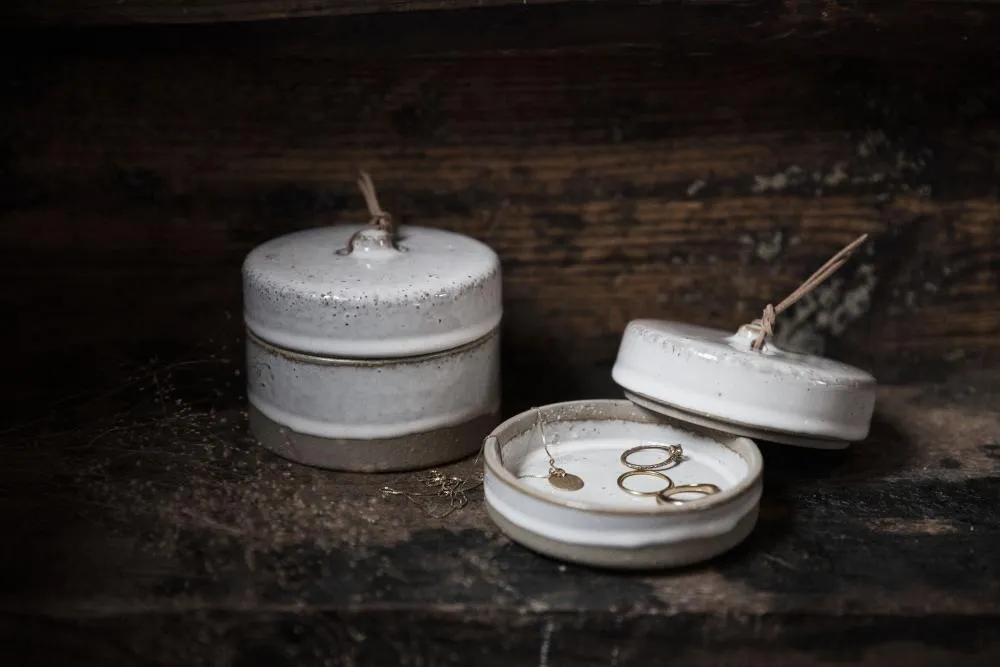 Denna burk är idealisk för förvaring av smycken, bomullspads, hårsnoddar eller andra små vardagsföremål. Lika fin i badrummet som på nattduksbordet eller hyllan i vardagsrummet. Kombinera med andra produkter från ERNST för en enhetlig och stilren inredning.