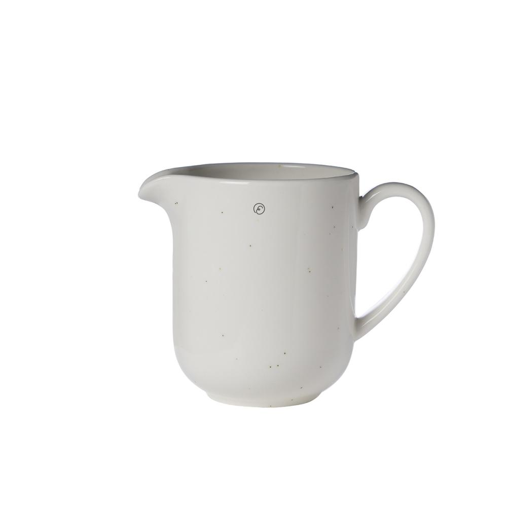 Liten kanna i glaserat porslin i en fin bruten vit nyans med små prickar i färgen