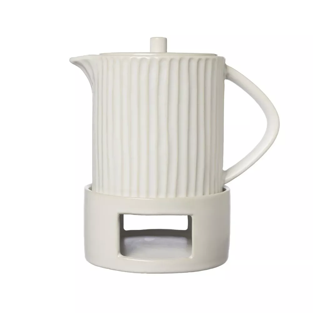 ERNST Glöggkanna / Tekanna med värmare, Räfflad Naturvit