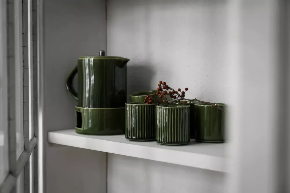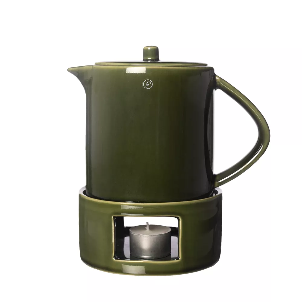 ERNST Glöggkanna / Tekanna med värmare – grön laserad stengodsdesign för mysiga stunder