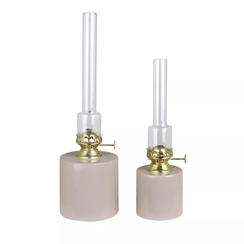 Stilren fotogenlampa i en skön beige färg med rakt brännare rör