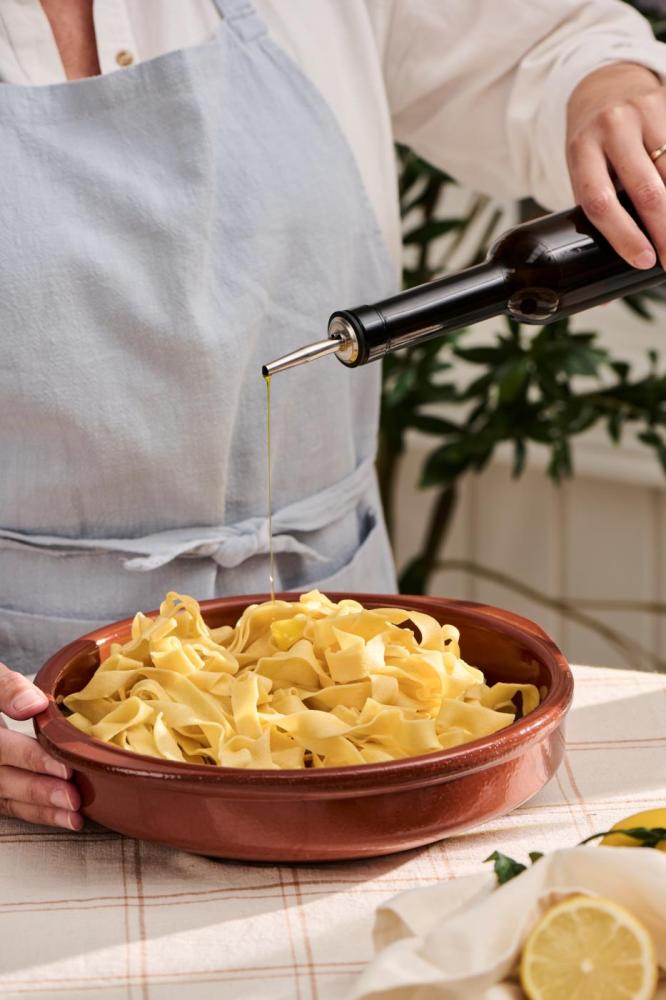 Olivgrön glasflaska - fyll med olja, och den pryder sin plats i köket.