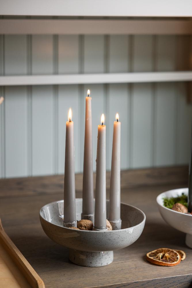 Adventsljusstake i blank naturfärgad keramik - Fin att dekorera med mossa, kottar eller polkagrisar.