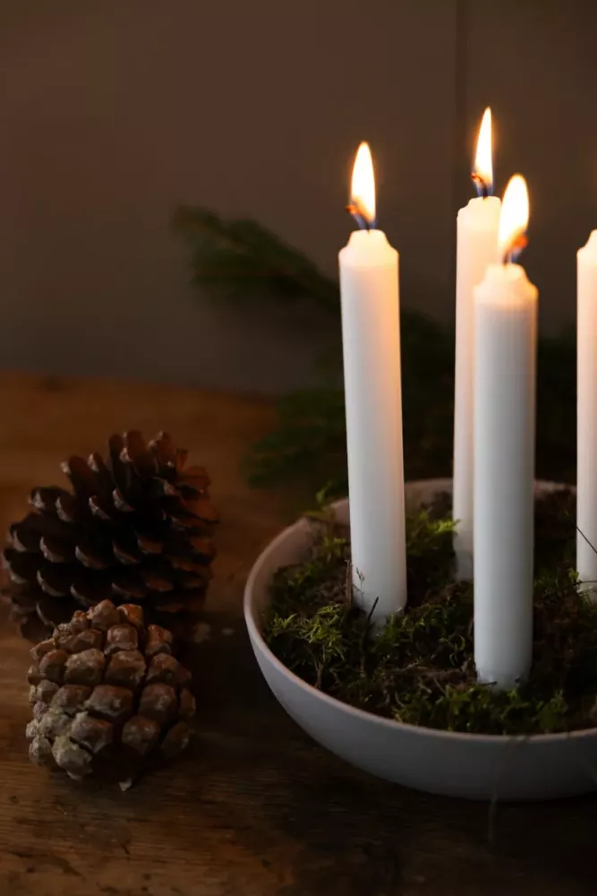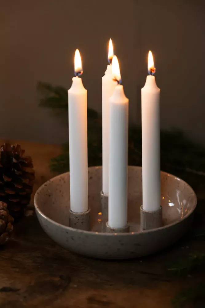 Ljusstake i blank keramik - Fin att dekorera med mossa, kottar eller polkagrisar.