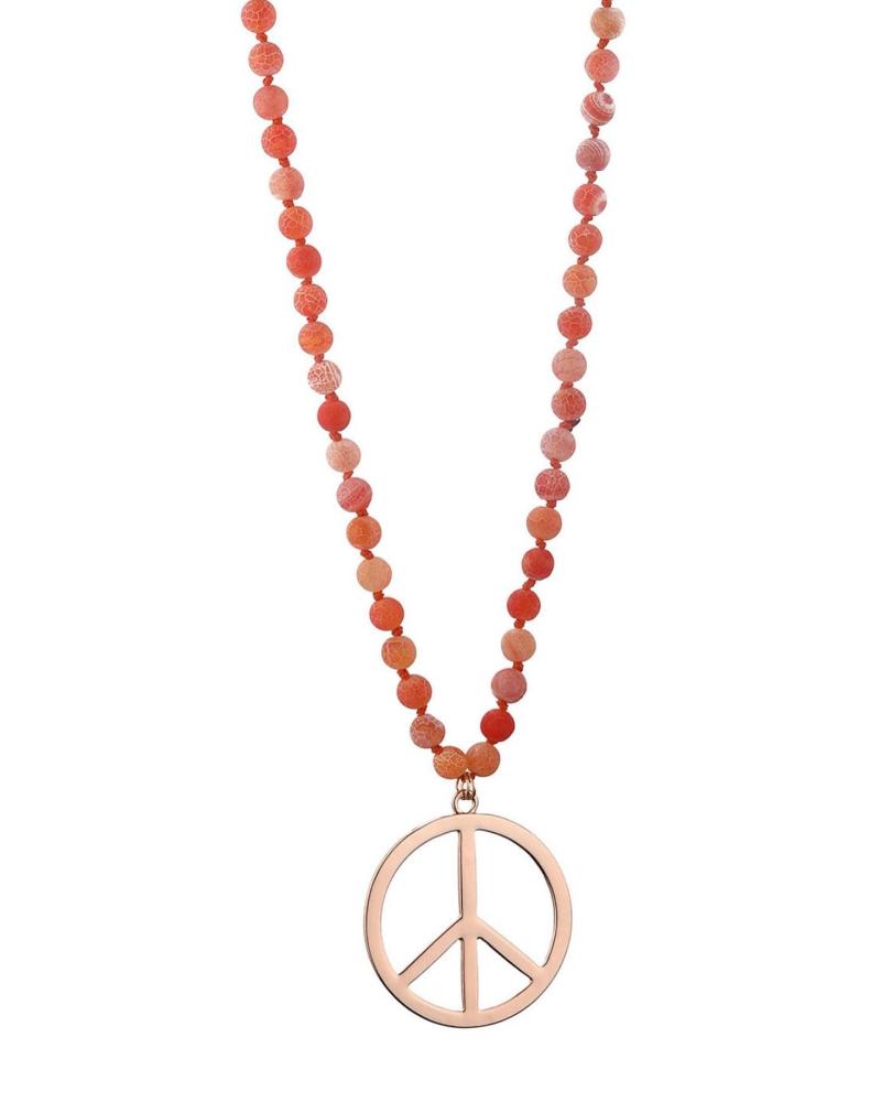Halsband orange stenkulor och peace-märke, Långt - Gemini