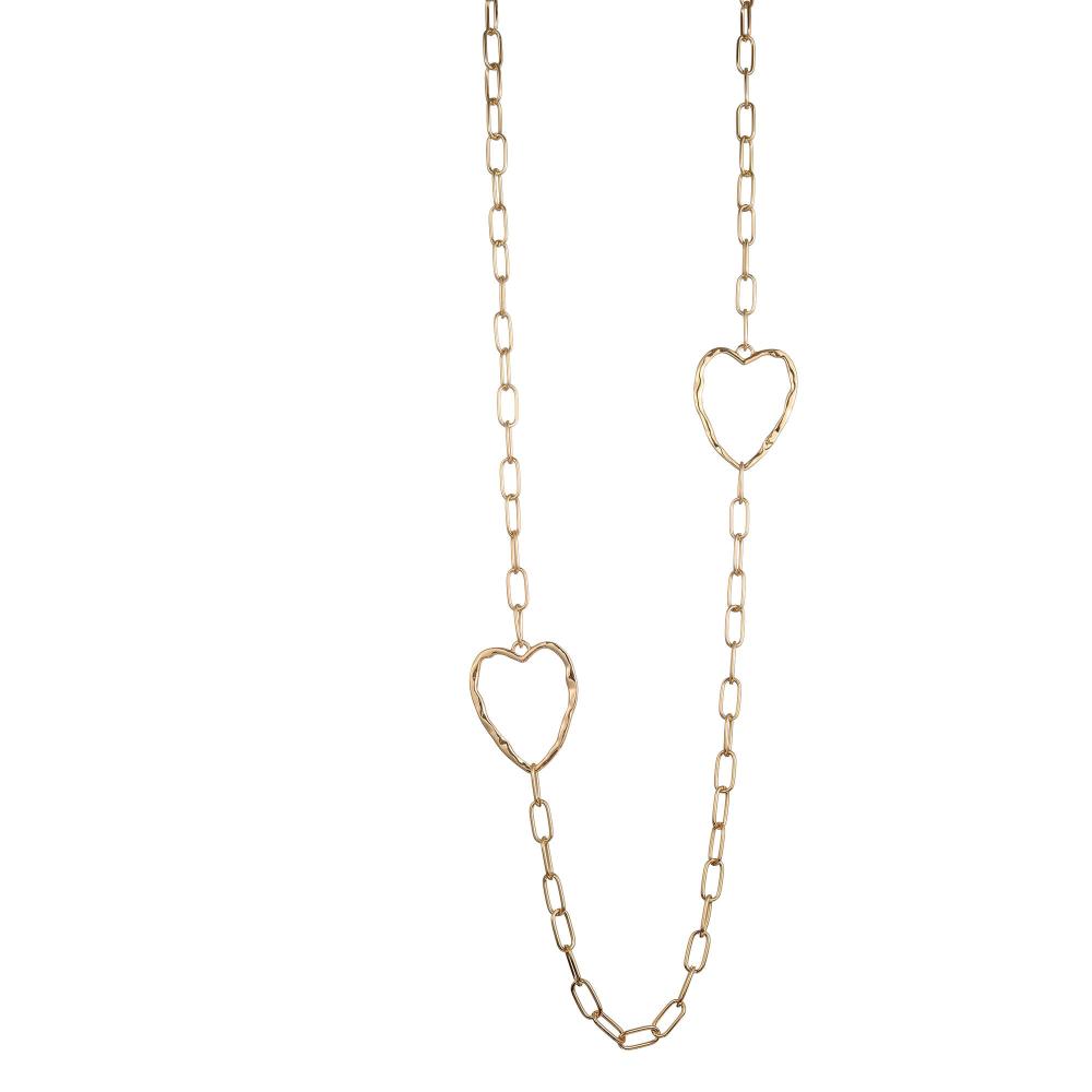 Halsband Långt, Grov kedja med hamrade hjärtan, Guldfärgat - Gemini