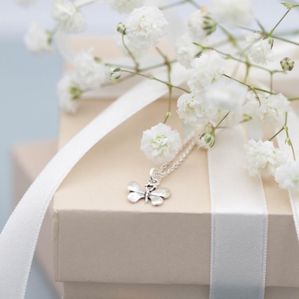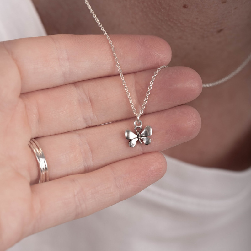 Litet och nätt silverhalsband med en söt liten fjäril, handgjort i äkta silver.