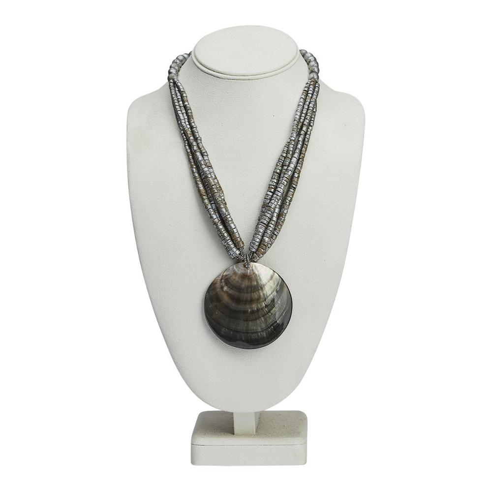 Halsband, Stor grå platt pärla från kokosnöt, Ebba - the moshi