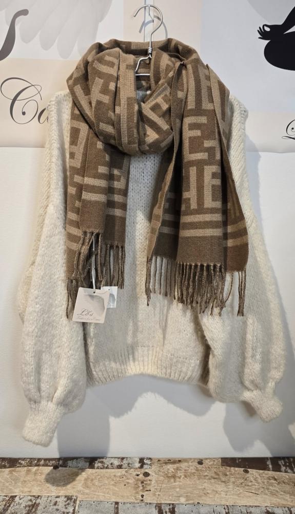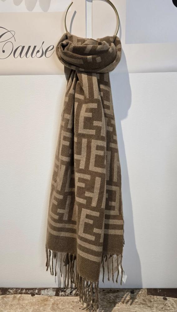 Halsduk med fransar, Grafiskt mönster, Fudge / Sand, Seline - Soulful Fashion