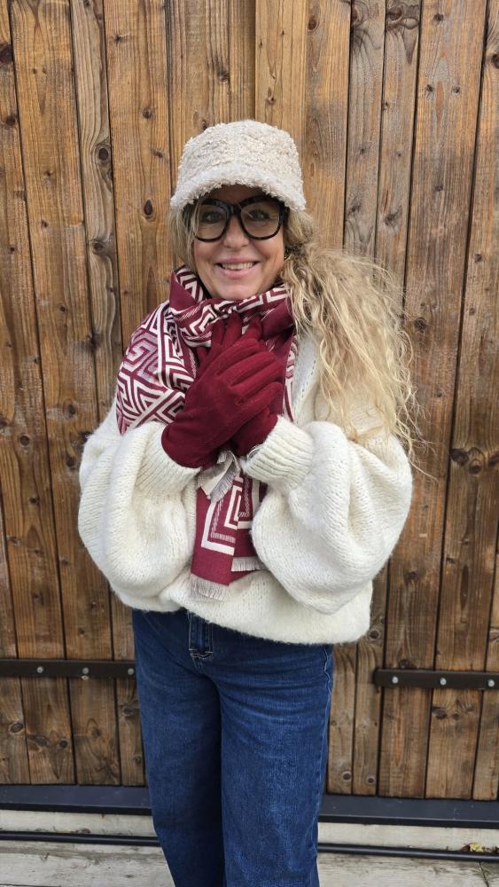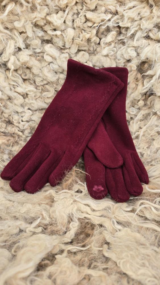 Mjuk och skön vinröd handske.