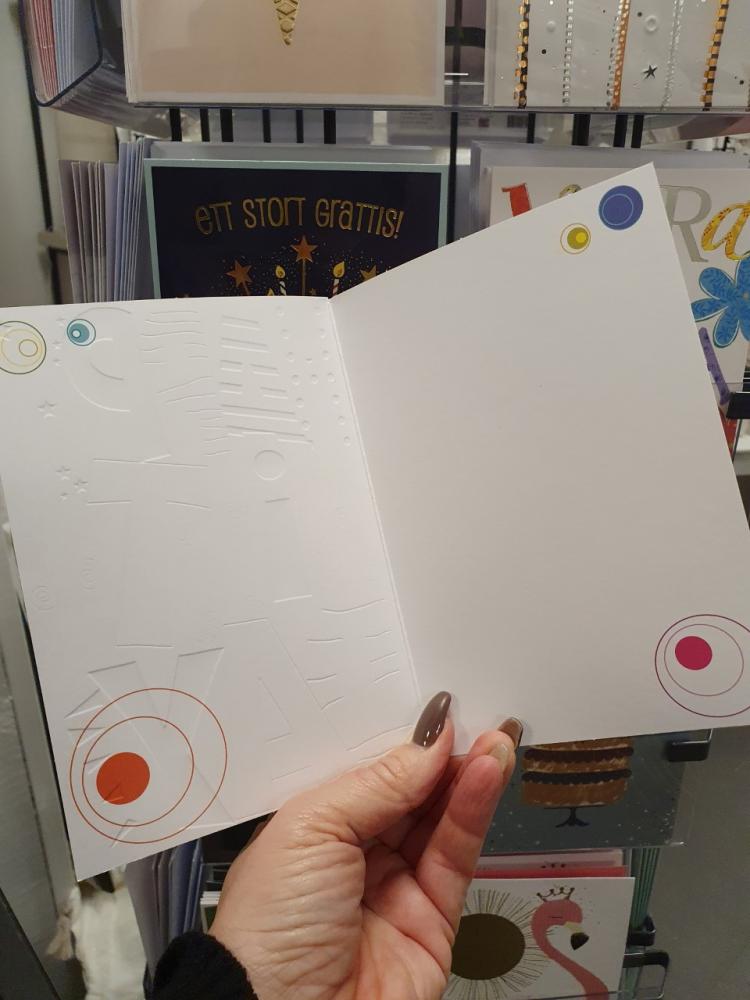 Inuti kortet: Ingen text men med mönster av några färgglada "duttar".