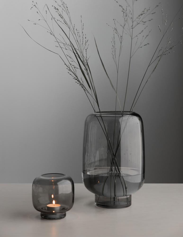 Produktinformation: Hultsjö Glasvas / Ljuslykta Grå, Liten - Storefactory